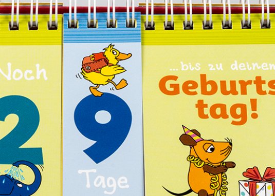 Um die Tage bis zu einem bestimmten Event im Auge zu behalten, hat man früher in großen Wandkalendern jeden Tag mit einem dicken roten Kreuz durchgestrichen. Heute kannst du dafür so einen coolen Aufsteller wie diesen benutzen. Was wir daran besonders mausschlau genial finden, ist, dass du ihn immer wieder verwenden kannst. Ganz gleich, ob du den Countdown bis zum ersten Schultag, bis zum Geburtstag oder bis Weihnachten runterzählen möchtest, mit dem Maus-Countdown fieberst du auf jedes beliebige Ereignis zu. Dafür hast du zwei einzelne Zahlenelemente zum Umblättern und verschiedene Hintergrundseiten. Wähle zuerst einfach den passenden Hintergrund aus, zum Beispiel: „... bis zu den nächsten Ferien“, „… bis zur Klassenfahrt“ oder „… bis Halloween“. Auch „Chanukka“, das „Zuckerfest“, „Diwali“ und eine Seite zum individuellen Beschriften sind mit dabei. Dann zählst du, wie viele Tage es bis zum Ereignis noch sind und stellst es mit den frei kombinieren Zahlen ein. Von maximal 99 Tagen an kannst du runterzählen und jeden Tag zur nächstniedrigeren Zahl umblättern. Das Design des stabilen Aufstellers macht dabei jedem Fan von der berühmten Sach- und Lachgeschichten-Maus viel Spaß. Der blaue Elefant und die gelbe Ente turnen über die Zahlen und die orange Maus ziert in szenischen Illustrationen die Event-Seiten. Dazu liefert sie dir als kleine Extras noch einige spannende Infos und DIY-Ideen. Ach, Vorfreude ist doch die schönste Freude und mit diesem Countdown-Aufsteller kannst du sie in vollen Zügen genießen!