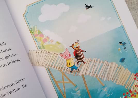 Die Rumpelding-Geschichte von Juli Leuze ist für Kinder ab fünf Jahren geschrieben. Deswegen braucht es natürlich auch unbedingt Bilder. Und diese Bilder machen auf eine hinreißende Art und Weise das, was Illustrationen im allerallerbesten Fall bewirken können: Sie schenken der Geschichte ein großes Extra an Leben, Atmosphäre und Ausdruck. In jedem der 18 Kapitel findest du dazu ein seitenfüllendes, dezent eingerahmtes Bild von Illustratorin Astrid Henn. Darauf entdeckst du immer wieder das putzig niedliche Rumpelding und seine Freunde in fantasievollen, farbintensiven Szenen. Einzelne Bildelemente purzeln zwischendurch auch mal aus dem Rahmen, was den Bildern einerseits Tiefe verleiht und andererseits herrlich verspielt wirkt. Schau es dir am besten selbst an, beim kicherig-kuscheligen Vorlesen. Oder lass dein Kind den Text ganz ohne Silbentrennung und mit angenehmen Zeilenabstand selber lesen. Denn auch als geübter Leser in der Grundschule wird dein Kind bestimmt noch viel Spaß an der Geschichte haben.