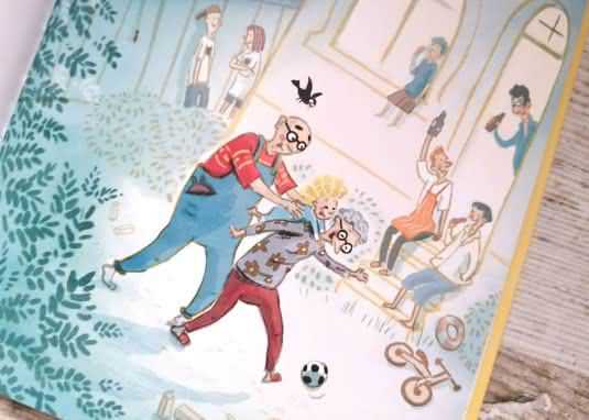 Wie bisher alle Kinderbücher vom bekannten Erfinder der Känguru-Chroniken hat Astrid Henn auch dieses Buch illustriert. Zum Glück! Denn ihr Illustrationsstil passt zu seinen Geschichten wie das Känguru zum Kleinkünstler oder der sprichwörtliche Deckel zum Topf. Ihr Stil ist schrill und bunt, witzig, originell und lebensnah. Alle cartoonigen Figuren aus dem ersten Oma-Internet-Teil erkennst du sofort wieder. Und mit ihnen geht es dann durchs Bilderbuch, mal mit Erinnerungs-Polaroids, mal in einer halb durchscheinenden Fantasie-Darstellung, mal einfach so. Der Qualm schlängelt sich in verspielten Kringel-Linien über die Seiten, es gibt Pfeile und Beschriftungen. All das macht unheimlich viel Spaß beim Betrachten, beim Vorlesen und Zuhören. Und deswegen ist auch dieses Kling-Henn-Kinderbuch wieder ein echtes Highlight zum Vorlesen oder zum Selberlesen für geübte Leser.