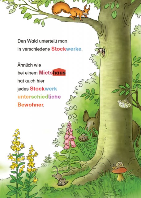 Illustriert werden die Conni-Bücher zum Lesenlernen von Herdis Albrecht. Ihr comicartiger Zeichenstil passt sehr gut zu dem modernen Text-Bild-Konzept, das die Reihe auszeichnet. Und ist zwischendrin mal eine Lesepause nötig, dann gibt es so viel zu entdecken auf den Bildern. Hier eine kleine Maus, die in ihrem Loch verschwindet, dort ein Reh, das durch die Büsche lugt – und jede Menge Eichhörnchen. Zählt sie mal durch, wenn ihr Lust habt. Und so ganz nebenbei wird altersgerecht jede Menge Wissen über den Wald und seine Bewohner vermittelt.