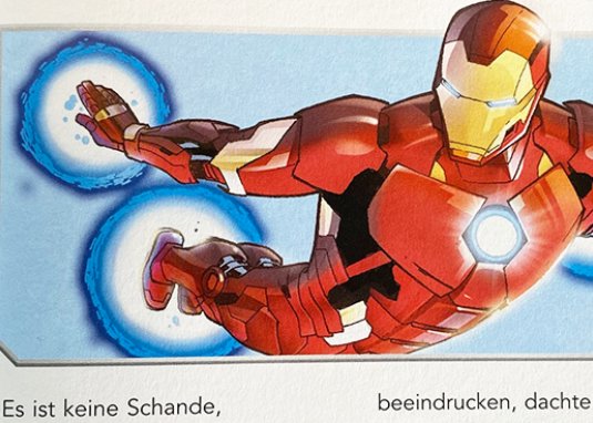 Dieser sehenswerte Marvel-Sammelband ist eine gelungene Mischung aus Comic und kurzen Abenteuergeschichten. Hier versteckt sich reichlich Lesespaß für Jungen und Mädchen, die schon etwas lesegeübt sind. Denn einige längere, leicht verschachtelte Sätze erfordern ein gutes Leseverständnis. Zudem finden sich ein paar englischsprachige Bezeichnungen. Etwa das Projekt „Rebirth“, durch das Captain America seine Superkräfte erlangt. Allerdings sind die Textblöcke überschaubar und werden durch viele Comic-Illustrationen aufgelockert. Manche Kapitel bieten zudem einen kurzen Rückblick in die Vergangenheit des jeweiligen Actionstars. Bei Spider-Man steigen Kinder jedoch gleich mitten in einer spannenden Verfolgungsjagd ein und werden sofort mitgerissen. Und das steigert die Lesemotivation ungemein, genau wie die gehörige Portion Marvel-Humor. Zum Beispiel, wenn der ameisengroße Ant-Man vom muskelbepackten Spider-Man mit den Worten begrüßt wird: „Nichts für ungut, aber ich hatte mit etwas Größerem gerechnet“. Doch genau diese Mischung aus höchst unterschiedlichen Charakteren, macht den Charme der Marvel-Geschichten aus, die allesamt ein gutes Ende finden.