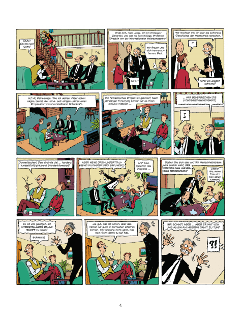 „Pauls fantastische Abenteuer“ sind ein klassischer Comic, mit Story und Bildern aus der Feder von Émile Bravo. Der hat als erster Comiczeichner überhaupt den Deutschen Jugendliteraturpreis bekommen und zwar für seine Graphic Novel „Meine Mutter ist in Amerika und hat Buffalo Bill getroffen“. Ebenso wurden Pauls Abenteuer bereits mit einem Preis ausgezeichnet. Sie sind aber auch wirklich toll. Der Comic vereint nämlich viele verschiedene Elemente und Ebenen zu einem absolut runden, spaßigen und dabei noch anspruchsvollen Schau- und Lesevergnügen. Es gibt zum Beispiel zahlreiche Anspielungen auf Weltraumgeschichten von Star Wars bis Captain Future. Theorien über Lichtgeschwindigkeit und ökologisches Gleichgewicht fließen beeindruckend leichtfüßig in die Geschichte ein. Es gibt witzige Bild-Wort-Spiele, zum Beispiel wenn das Lichtgeschwindigkeit fliegende Raumschiff die Form einer Taschenlampe hat. Und Paul selbst ist ein so normaler Junge (inklusive extrem nervigem kleinem Bruder), dass man besonders leicht mit ihm mitfühlen kann und seine verrückte Mission umso intensiver miterlebt.