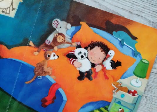 In dieser Gute-Nacht-Geschichte erschafft Kinderbuchprofi Katja Reider mit liebevollen Reimen eine kuschelige Atmosphäre à la heile Welt, die wunderbar beruhigend und anheimelnd wirkt. Dazu gelingt es ihr auch noch, Infos über die typischen Schlafgewohnheiten der jeweiligen Tiere in die Verse zu reimen und so inhaltlich enorm zu bereichern. Ganz gleich ob über oder unter Wasser, hoch im Baum oder inmitten familiärer Geborgenheit – überall herrscht dabei ein lauschiges und behütetes Miteinander. Besonders schön ist auch der Bogen, den die Gute-Nacht-Geschichte am Anfang und Ende zu einem kleinen Menschenkind mit seinen Kuscheltieren schlägt. Denn damit wird auch für dein Kind eine Verbindung zwischen Buchwelt und echter Welt hergestellt. Und wenn dann schon die Tiere und das Kind im Buch so kuschelwarm und weich gebettet einschlafen, ist dein Kind ihnen nahe genug, um es ihnen schnell gleichzutun.