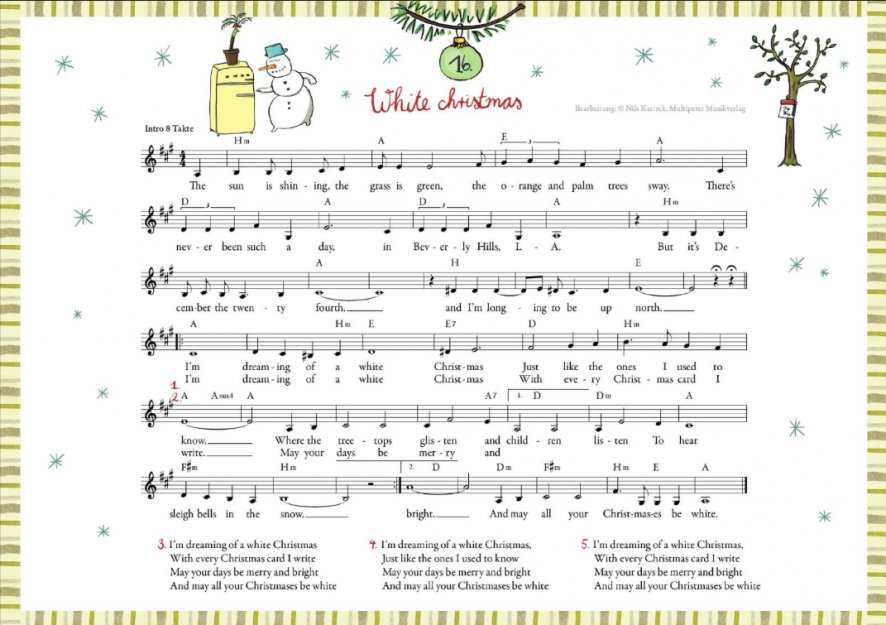 Die Weihnachtszeit wird musikalisch, bunt und spannend mit originell ausgewählten Weihnachtsliedern und lustigen Bildern!